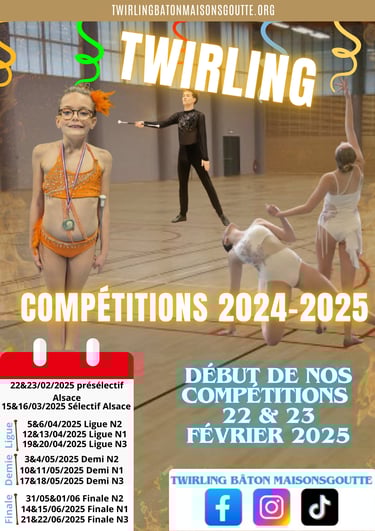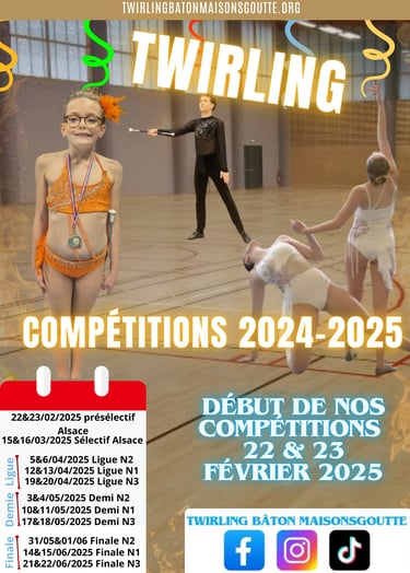 Déja 3 semaines ! Après des semaines de préparation, le TBM participera à sa première compétition 2025. Nos athlètes sont prêts à tout déchirer et obtenir de belles médailles. Pour nous supporter, rien de plus simple : Rendez-vous au Gymnase Camille See, avenue de l'Europe, 68000 Colmar ou sur twirlingbatonmaisonsgoutte.org/week-end-de-competition-twirling-baton-maisonsgoutte. On vous attends nombreux.